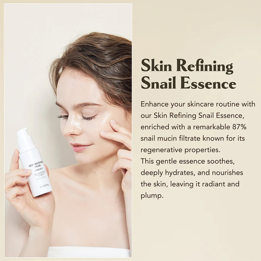 Øk hudpleieregimet ditt med Skin Refining Snail Essence , en kraftig formel designet for å forynge og hydrere huden din. Beriket med 87 % sneglesekretfiltrat , leverer denne essensen viktige næringsstoffer til skadet og ujevn hud, forbedrer elastisiteten og fremmer en jevnere hudfarge. De naturlige egenskapene til sneglemucin virker for å berolige stresset hud, og gir dyp hydrering samtidig som den synlig reduserer forekomsten av mørke flekker, solskader og arr. Regelmessig bruk forbedrer hudens naturlige regenererende evner, noe som fører til en sunnere og mer spenstig hudbarriere.